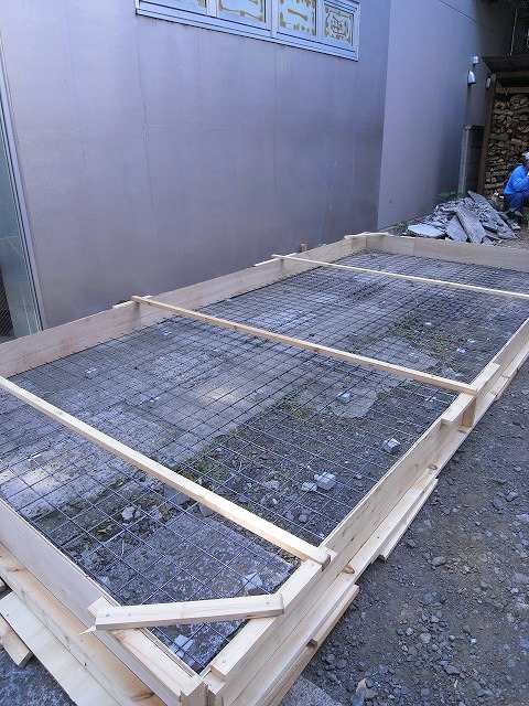ワイヤーメッシュを敷いて。