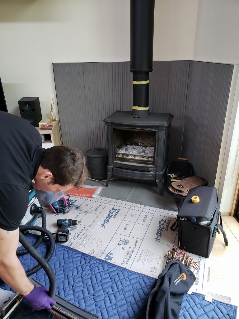 約3年前に設置させて頂いたヨツール社のF400になります。掃除前の煙突内部を見るとタールもなくパウダー状の煤が付着していました。掃除後は見ての通りすっきり綺麗になっていますね。今シーズンも🔥を眺めながらの晩酌を楽しんで頂けたらと思います。